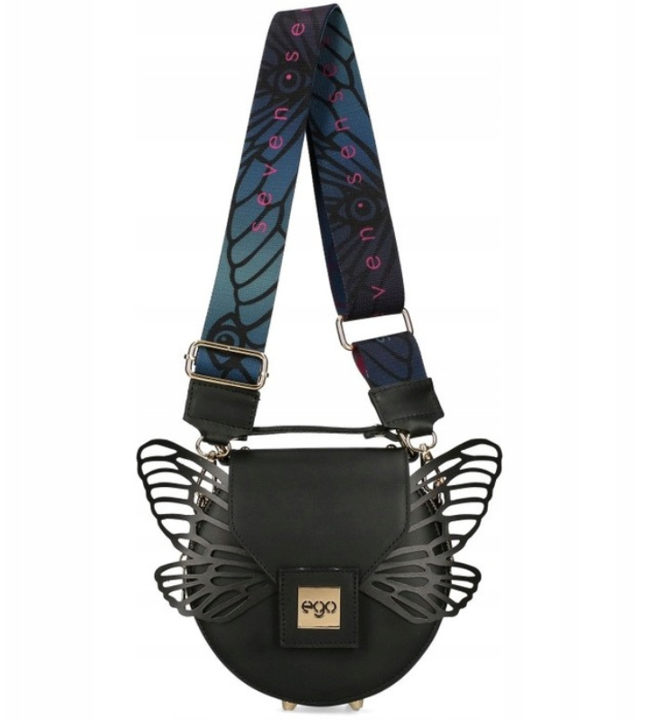 Niewątpliwą ozdobą listonoszki EGO są jej szczegóły: oryginalny uchwyt, szeroki pas z motywem i kolorystyką nawiązującą do stylu torebki, dołączana ozdoba w postaci skrzydeł; odpinamy, regulowany, szeroki pas oraz uchwyt do noszenia w dłoni. Wszystkie te szczegóły sprawiają że kupując jedną torebkę możemy stylizować ją na różne sposoby– mamy do dyspozycji fantazyjny kuferek z motylem, prostą torebkę z logotypem, listonoszkę, kuferek lub klasyczną torebkę na ramię.