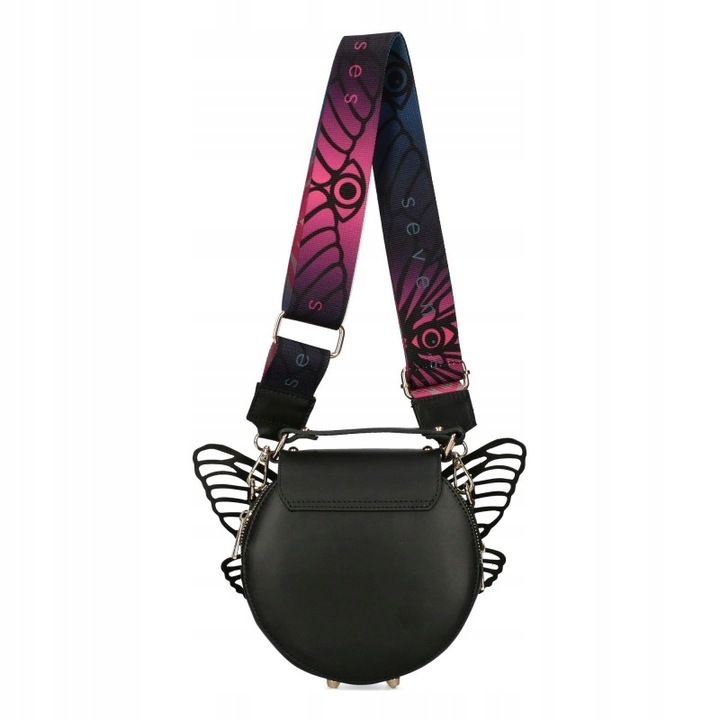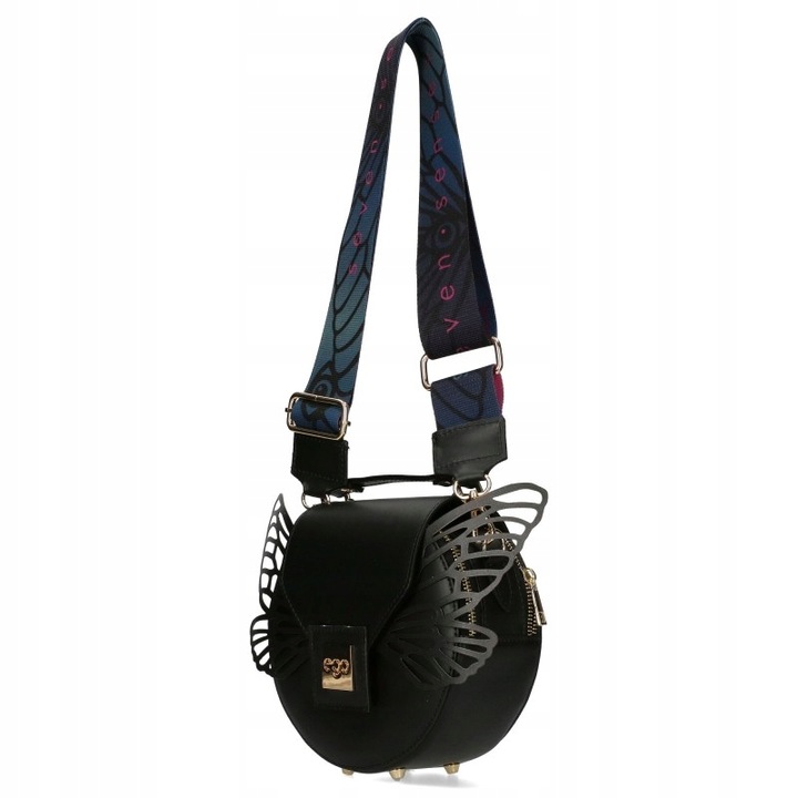 Oryginalna torebka- listonoszka- kuferek EGO Insecta, ma 2 komory zamykane zamkami błyskawicznymi i zabezpieczone klapką z zamkiem magnetycznym. Torebka EGO wyposażona jest w wąski uchwyt do przenoszenia w dłoni oraz odpinany szeroki pasek z możliwością regulacji długość maksymalna paska około 130 cm. Torebka EGO Insecta posiada dodatkową podwójną ozdobę w kształcie skrzydeł motyla– można jej użyć chcąc zmienić stylizację.