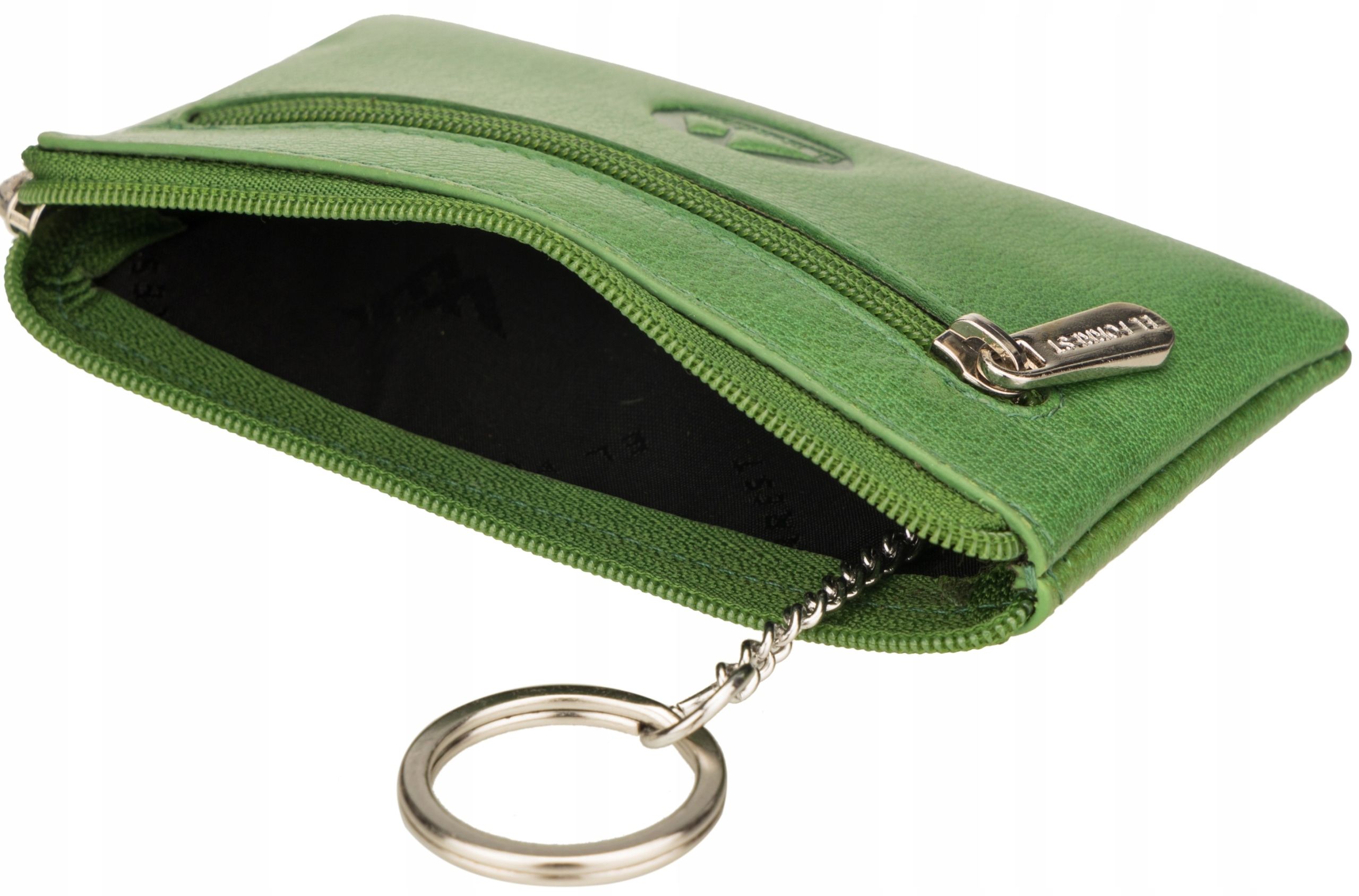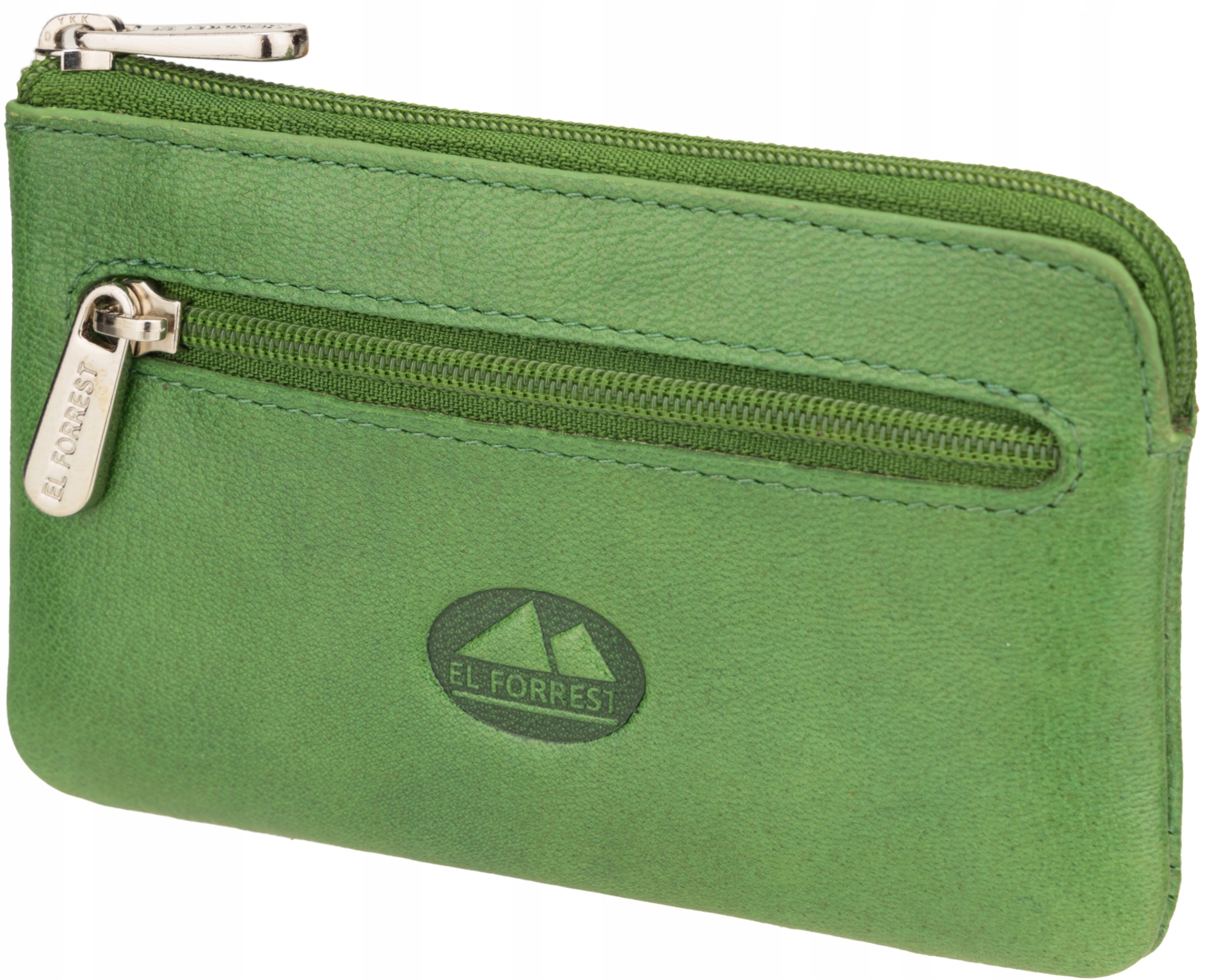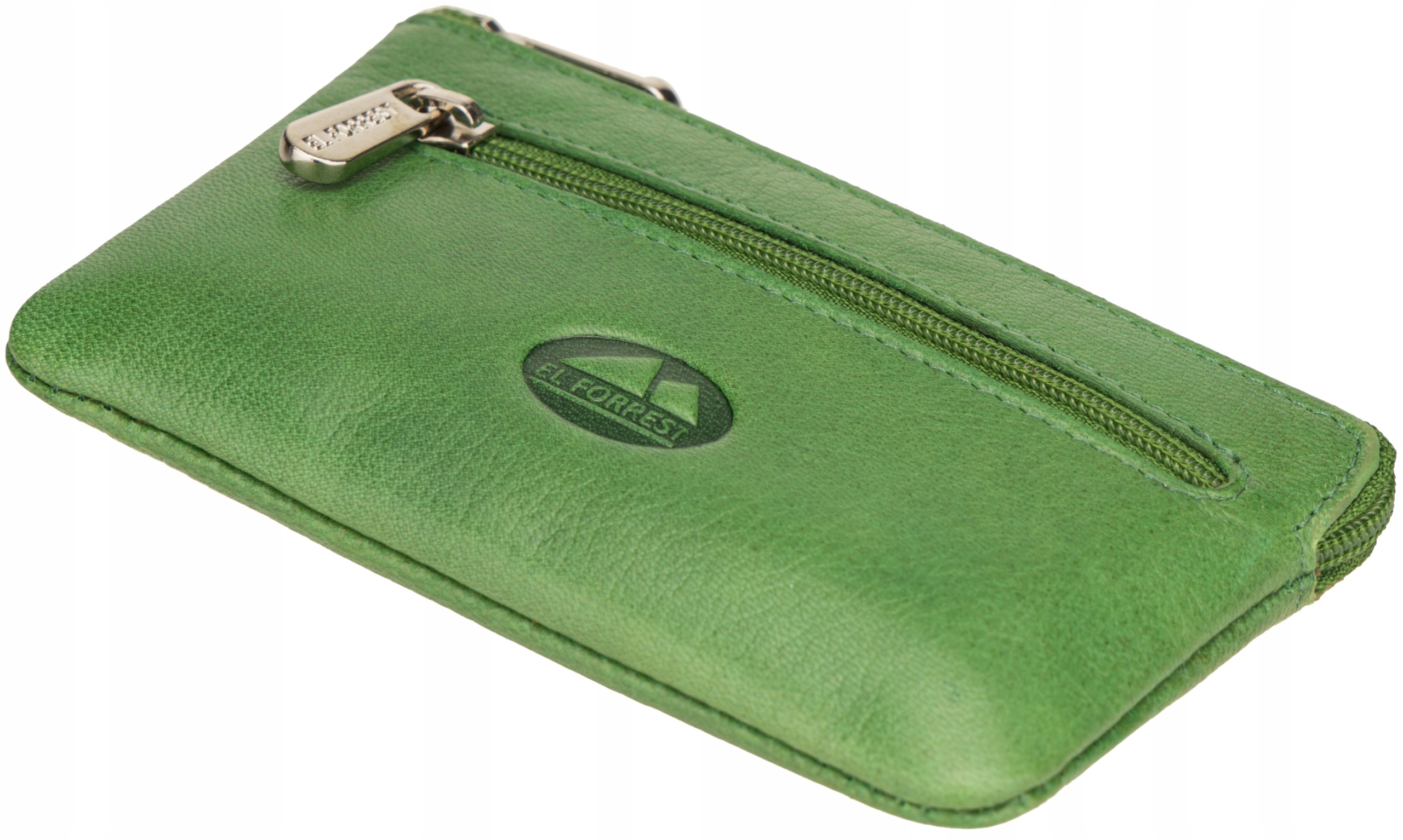 Jednokomorowe etui na klucze El Forrest zamykane zamkiem błyskawicznym ma jedną komorę wyłożoną synetetyczną podszewką z logo marki El Forrest. W środku znajduje sie skórzany paseczek i przymocowane do niego kółeczko na klucze. Na zewnątrz wszyta jest kieszonka zamykana suwakiem, etui El Forrest może pełnić funkcję małego portfelika.