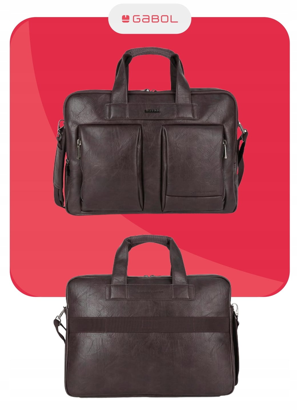 GB25 Gabol torba dwukomorowa na laptopa 15,6' biznesowa eko skóra brąz