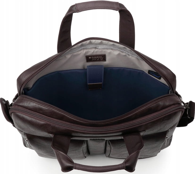 Torba Gabol w stylu biznesowym posiada dwie duże komory, w których możesz schować dokumenty; w tym jedną, do której zmieści się laptop 15”6 . Torba Gabol wyposażona jest także w dwie frontowe kieszenie- przeznaczone na najczęściej wyciągane drobiazgi.