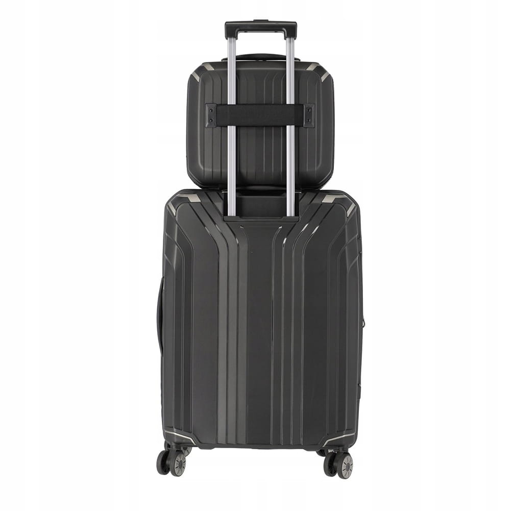 - Dodatkowe cechy: Podwójne suwaki wysokiej jakości, Organizer na drobne przedmioty, Uchwyt górny, Możliwość zamocowania na uchwycie walizki, Podszewka wykonana z R-PET , Ochronne narożniki, Dodatkowa kosmetyczka w komplecie, Powlekane wodoodporne/wodoodporne zamki błyskawiczne, Kieszeń na tablet, Możliwość doczepienia paska na ramię