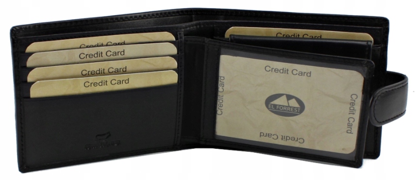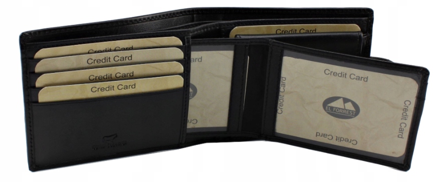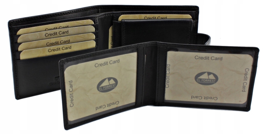 - 7 miejsc na karty płatnicze w tym 2 kieszenie przeźroczyste (na dowód osobisty, karty płatnicze, zdjęcia)