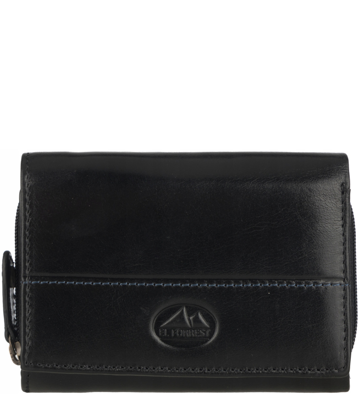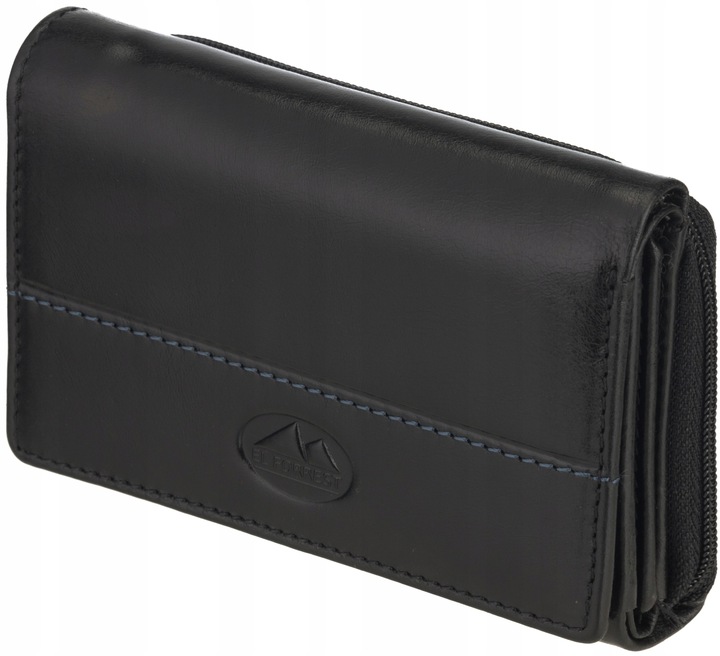 P411 Mały portfel damski El Forrest zamek rfid czarny z nieb. nitką