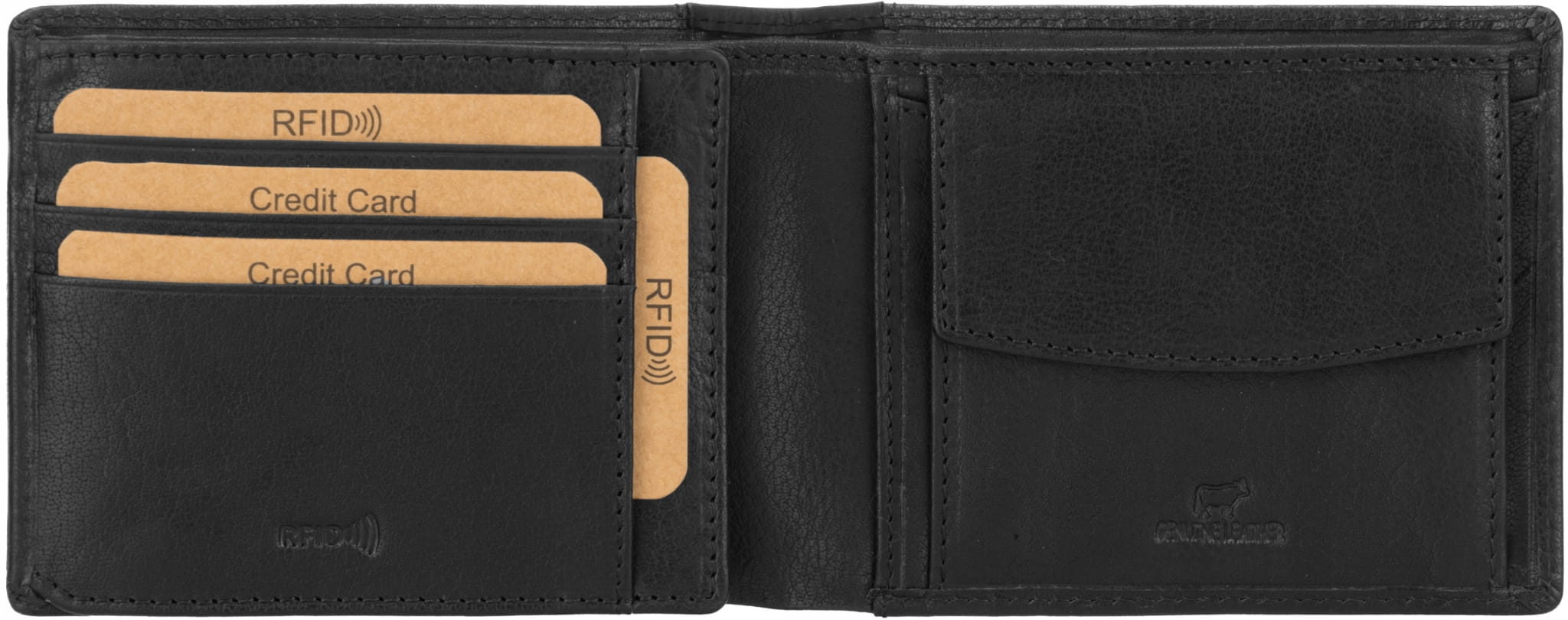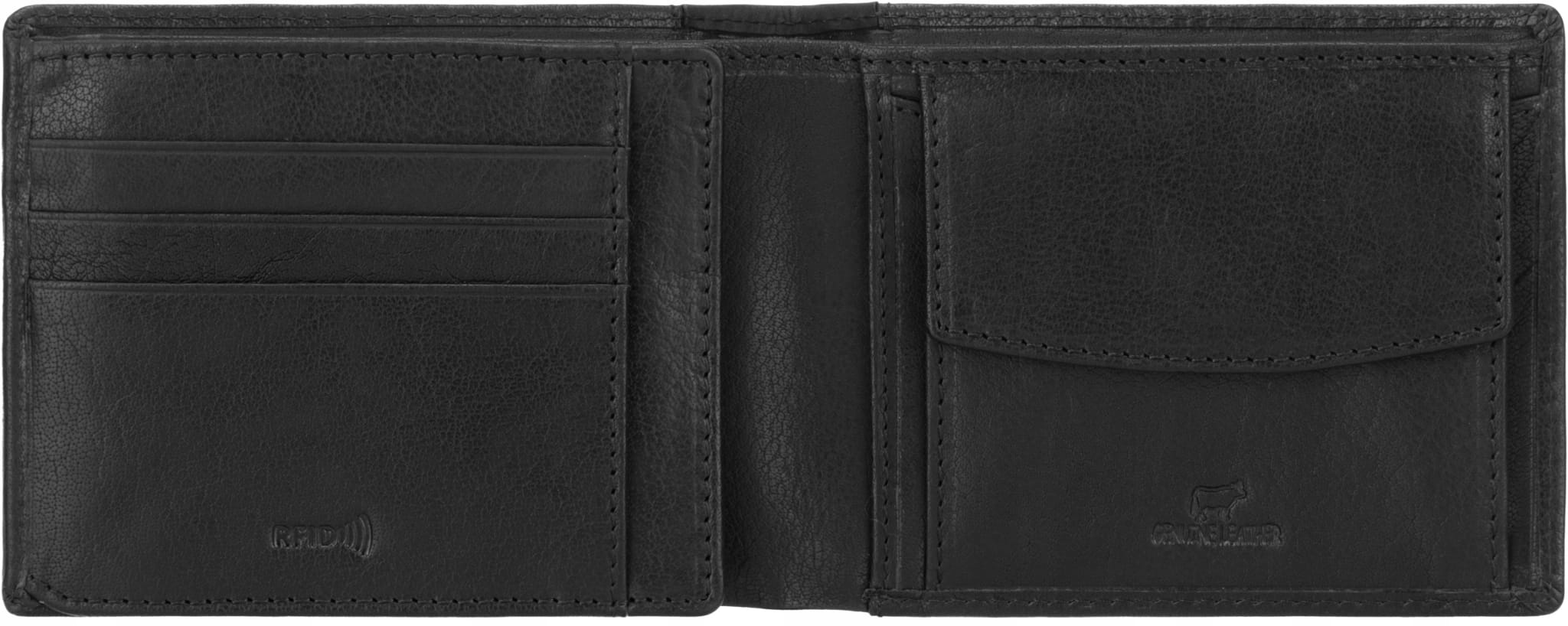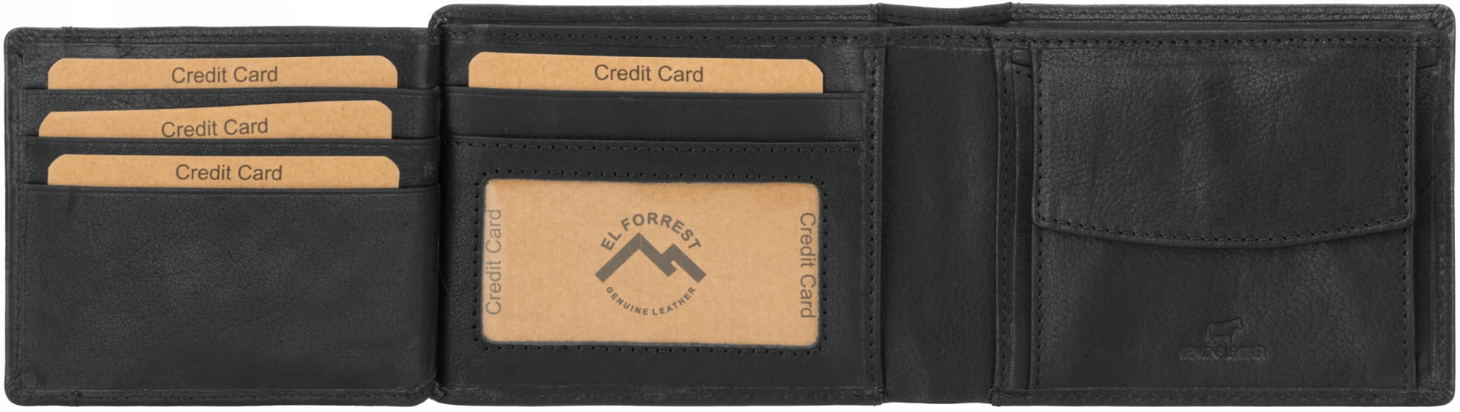 Portfel męski poziomy ze skóry naturalnej zamykany otwarty El Forrest
