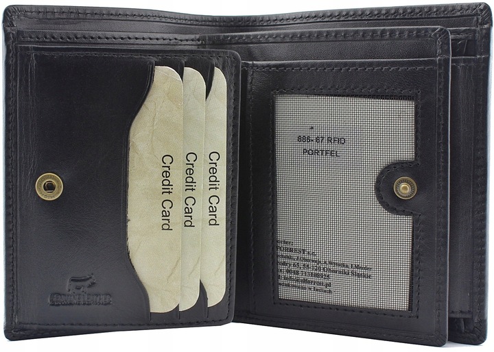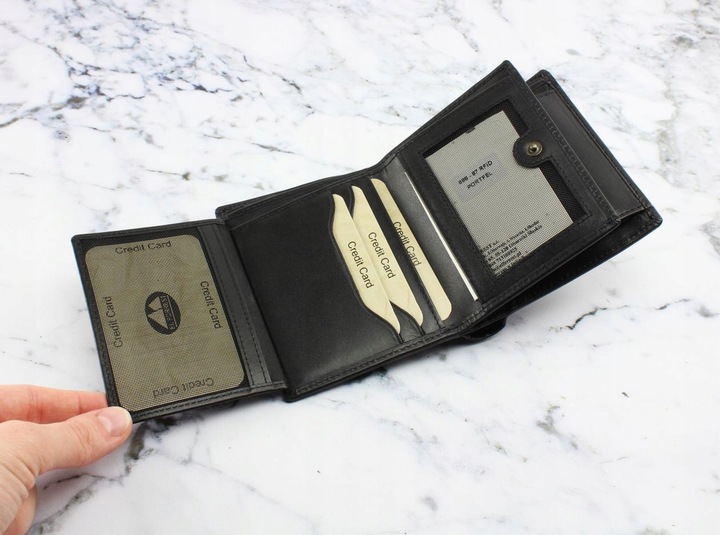 Z wbudowaną technologią RFID Secure możesz spokojnie przechowywać karty zbliżeniowe i dokumenty z chipem. Portfel skutecznie chroni przed nieautoryzowanym odczytem danych, co czyni go idealnym wyborem dla osób dbających o bezpieczeństwo swoich informacji w świecie cyfrowym.