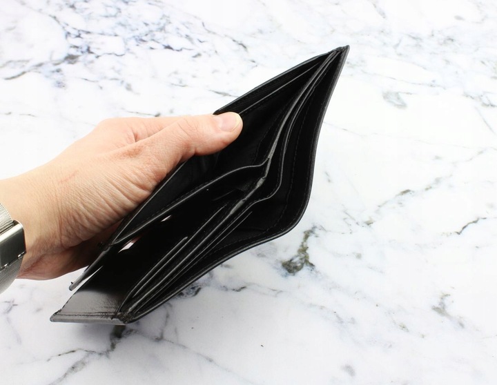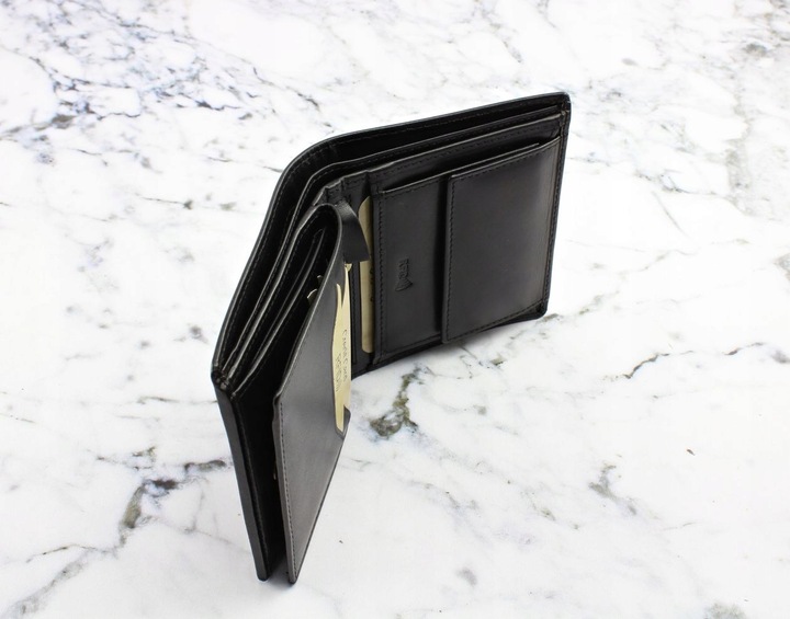 Portfel męski skórzany wyposażony w kieszonki przeznaczone na banknoty, monety i karty