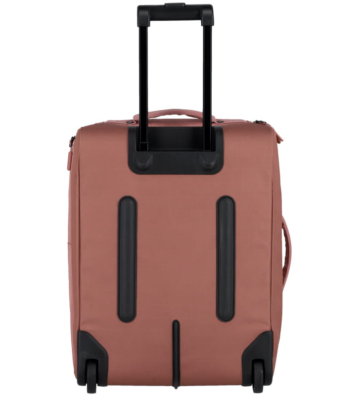 Torba Travelite wyposażona jest w dwa kauczukowe kółka, stelaż i wyciąganą rączkę z blokadą wysokości. Rączka w górnej części zabezpieczona jest polipropylenowym ochraniaczem. Po dwóch bokach torby (w górnej części i na jednym z boków) wszyte są stabilnie i solidnie, krótkie uchwyty. Ułatwiają one przenoszenie bagażu w ręce. W zależności od ilości bagażu, obecności dzieci i innych towarzyszy podróży, możemy nosić torbę w ręce lub wygodnie ciągnąć korzystając z kauczukowych kółek montowanych na solidnym stelażu w torbie Travelite Kick Off.