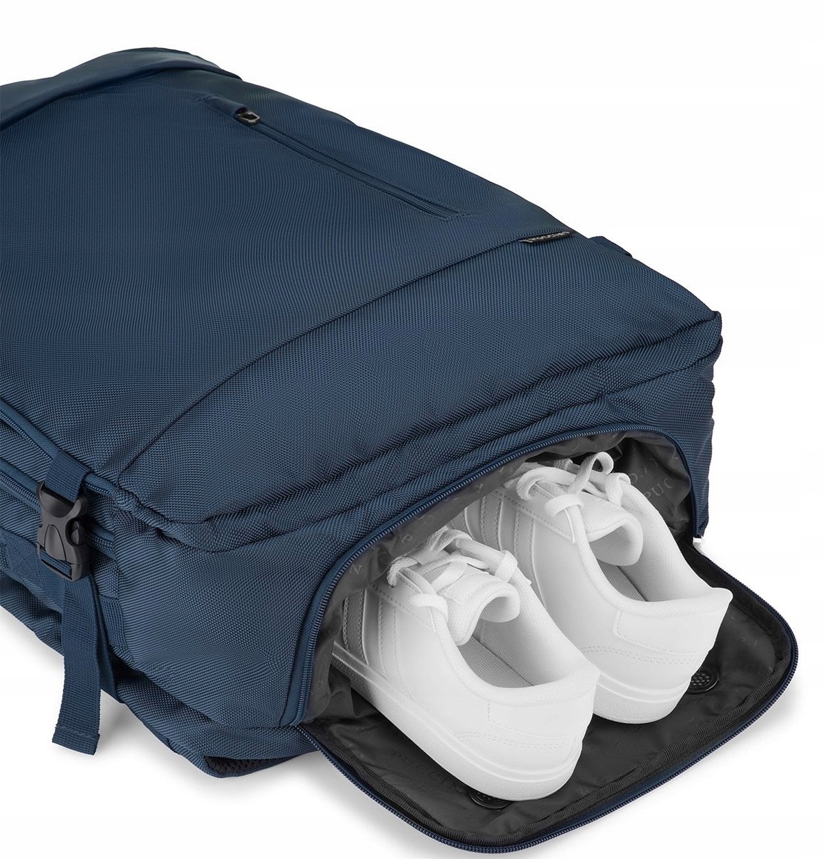 - Kieszeń z wywietrznikami na buty- umożliwia oddzielenie obuwia od pozostałych rzeczy, zapewniając odpowiednią cyrkulację powietrza.