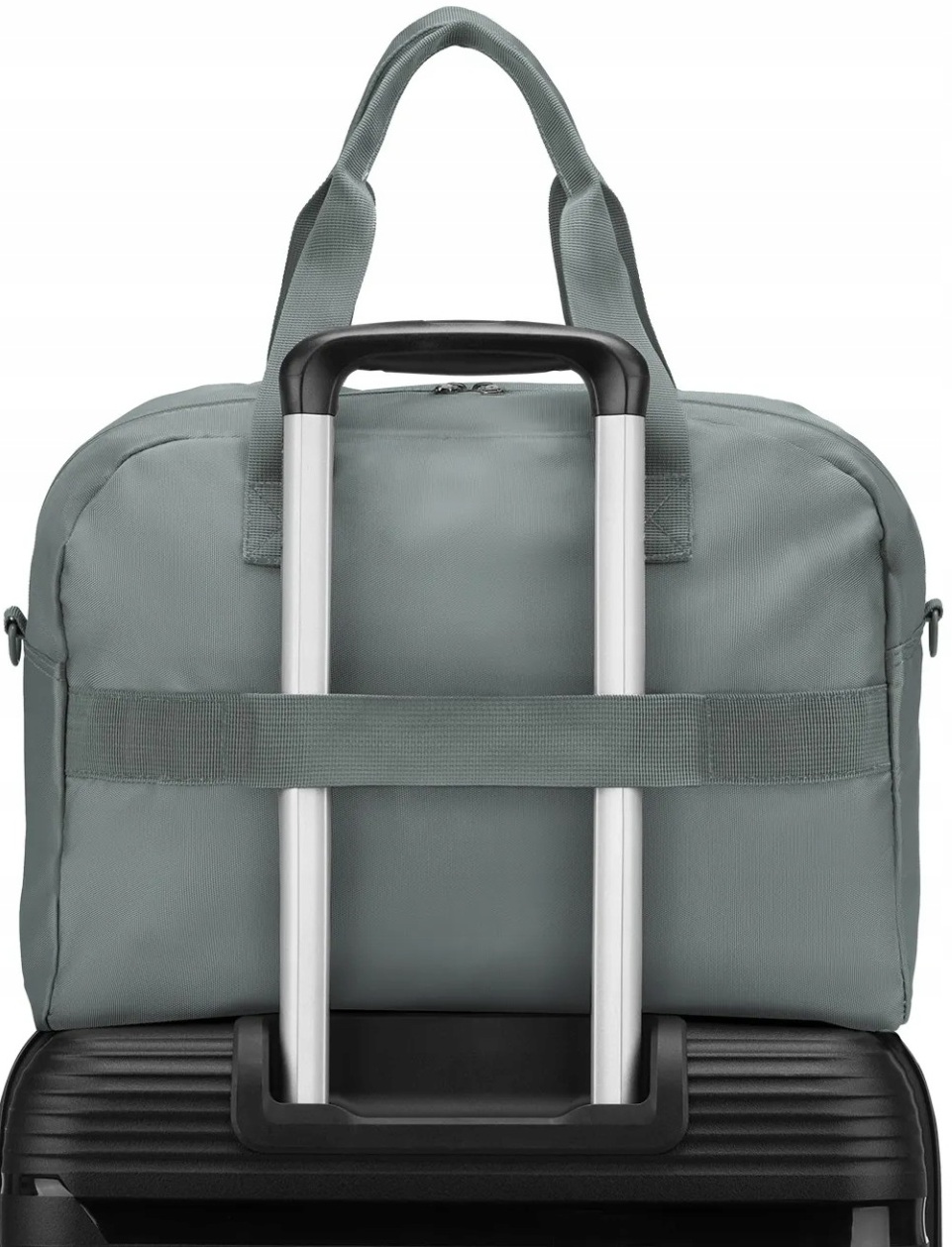 ▶️ Model oferuje pełną swobodę w sposobie noszenia. Torbę można przenosić w dłoni za pomocą dwóch uchwytów, na ramieniu lub crossbody dzięki odpinanemu, regulowanemu paskowi, a specjalny pas pozwala przypiąć ją do walizki dla łatwiejszego transportu.