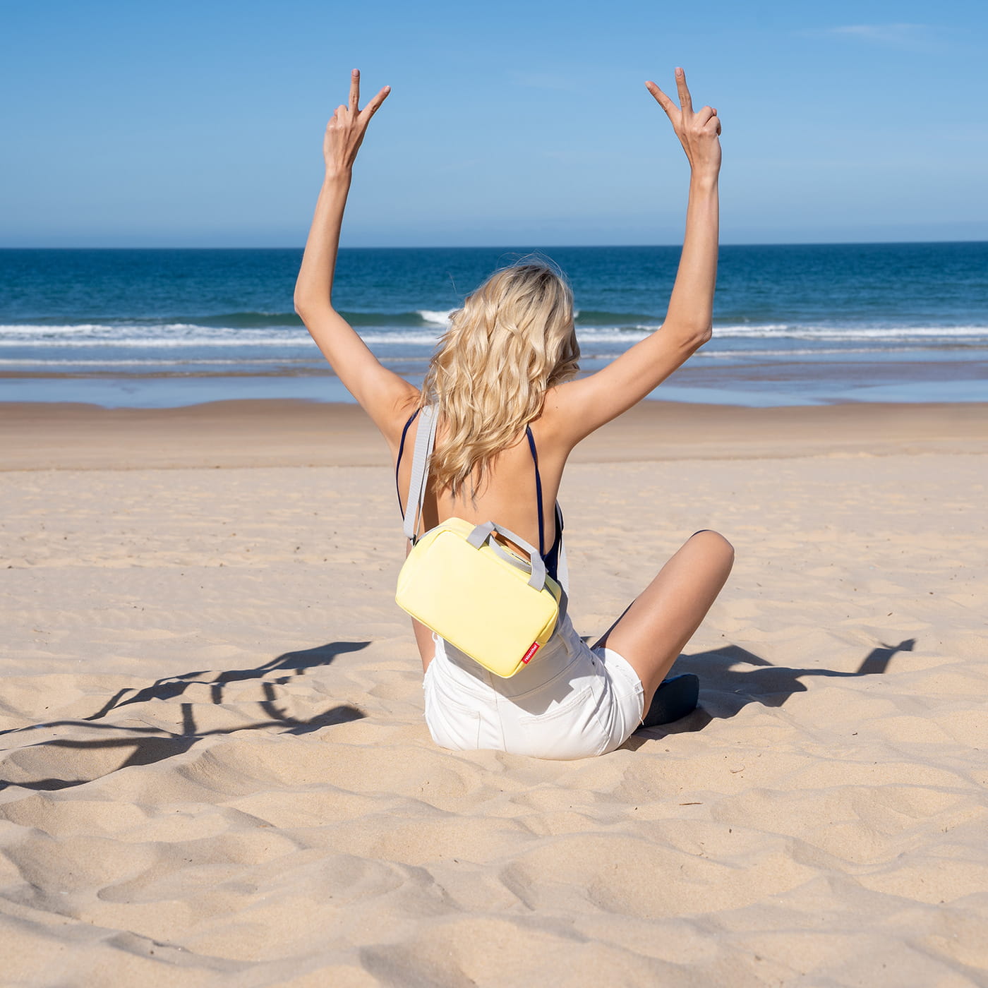 - Zapewnia bezpieczną przestrzeń dla kosmetyków, kremów i innych niezbędnych rzeczy ,dzięki czemu można chronić je przed zabrudzeniem oraz ciepłem w podróży lub na wakacjach .
