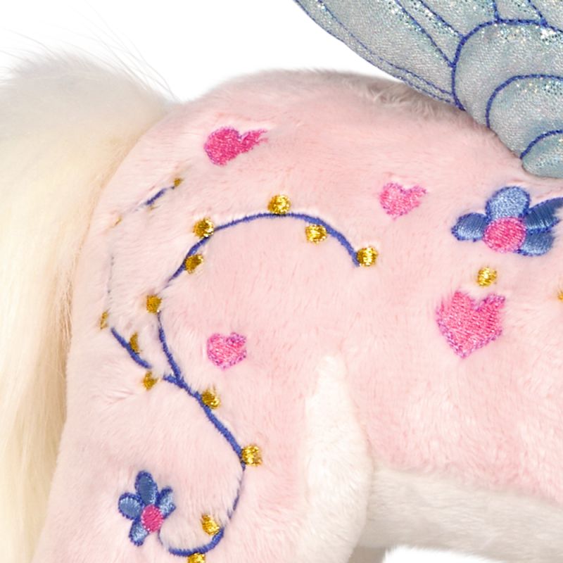 Do zabawy, przytulania i kochania: Miękki i przytulny pluszowy jednorożec Berry to idealny towarzysz na chwile relaksu. Z błyszczącym rogiem i kopytami, lśniącymi skrzydłami i uroczym haftem w serduszka, jednorożec Berry to lśniący dodatek do każdego pokoju dziecięcego. Witamy w raju jednorożców! Zalecane pranie ręczne.