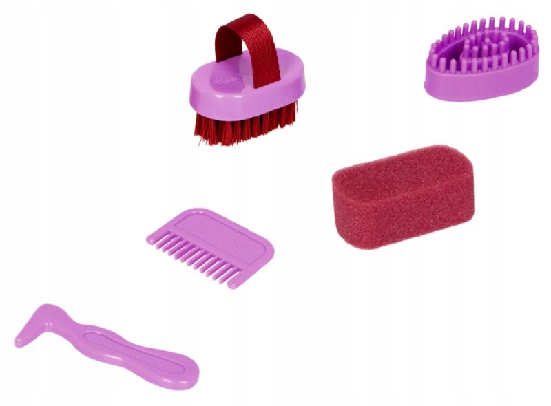 W zestawie znajduje się wszystko, czego potrzeba do kompleksowej pielęgnacji konia lub kucyka: grzebień do grzywy, grzebień do włosów, szczotka do czyszczenia, kopystka oraz gąbka. Każdy element został dopasowany rozmiarem do dziecięcych rączek, co ułatwia zabawę i zachęca do samodzielności.