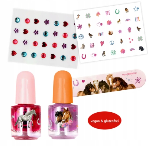 Zestaw do stylizacji paznokci Pferdefreunde – lakier, naklejki, pilniczek | Spiegelburg