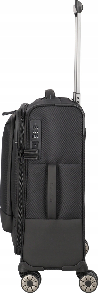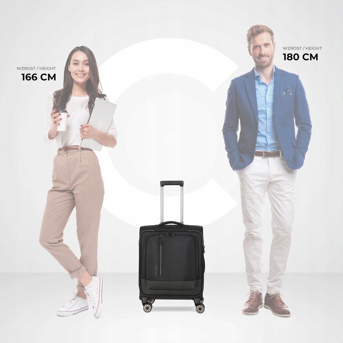 Miękka walizka wykonana z wytrzymałego poliestru zapewnia elastyczność i odporność na codzienne użytkowanie, a cztery obrotowe kółka 360° gwarantują płynne i komfortowe prowadzenie w każdej pozycji. Teleskopowa rączka oparta na podwójnym stelażu zwiększa stabilność i wygodę manewrowania, nawet w zatłoczonych przestrzeniach lotniskowych.