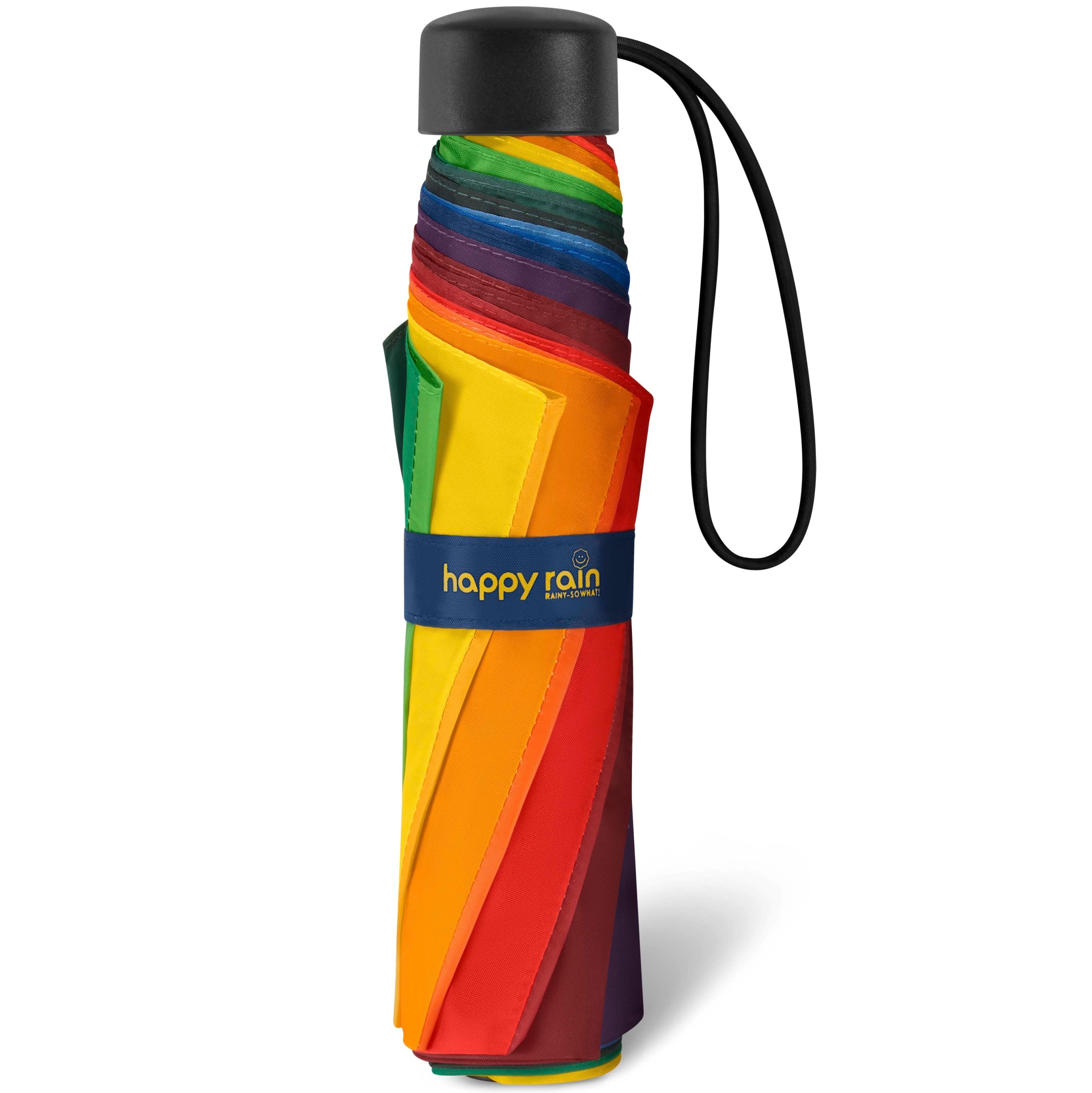 Y37 Lekka składana manualna mini parasolka Happy Rain Rainbow bez pokrowca