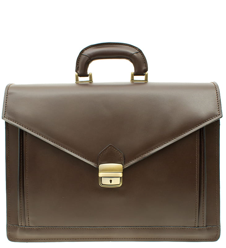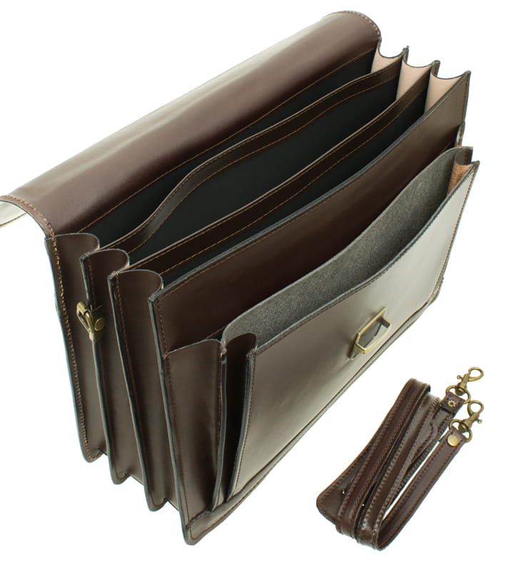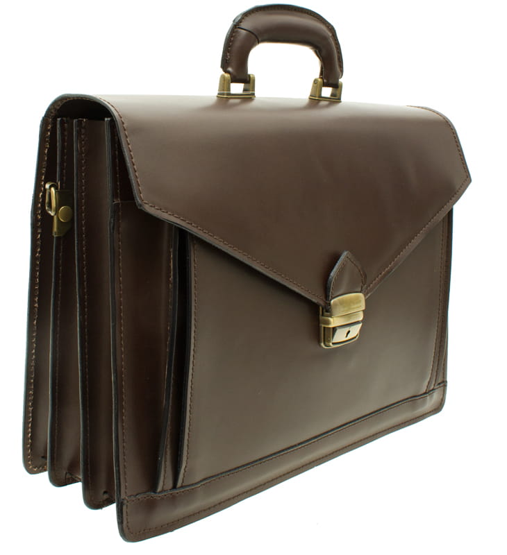 ts37 Włoska teczka, aktówka skórzana skóra naturalna ciemny brąz